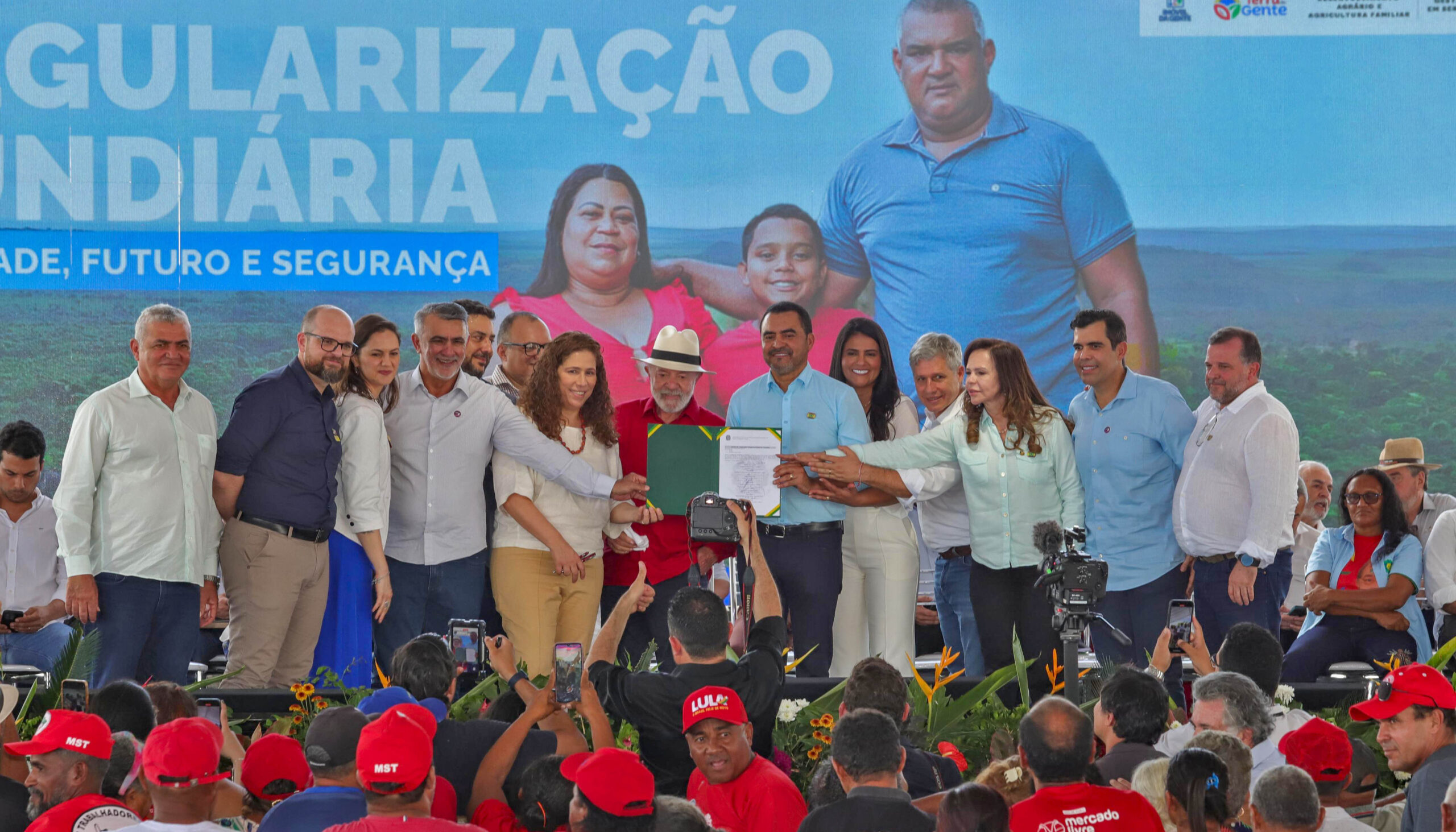 Em ato histórico, o governador Wanderlei Barbosa assinou, com o presidente da República, Luiz Inácio Lula da Silva, na sexta-feira, 27, o Acordo de Cooperação Técnica (ACT) entre os governos federal e estadual, voltado à governança fundiária de 1,9 milhão de hectares no Tocantins — terras que pertencem à União. O evento ocorreu na cidade de Araguatins, na orla do Rio Araguaia, e incluiu também a entrega de títulos de regularização fundiária e de imóveis pelos programas Terra da Gente e Imóvel da Gente, ambos do Governo Federal.
