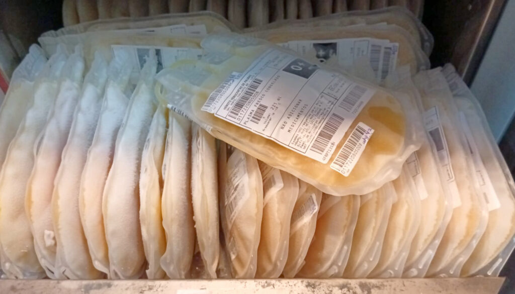 De acordo com relatório do Hemocentro, no ano de 2024 foram enviadas 3.616 bolsas de plasma e no ano de 2025 foram 2.688, até o momento.